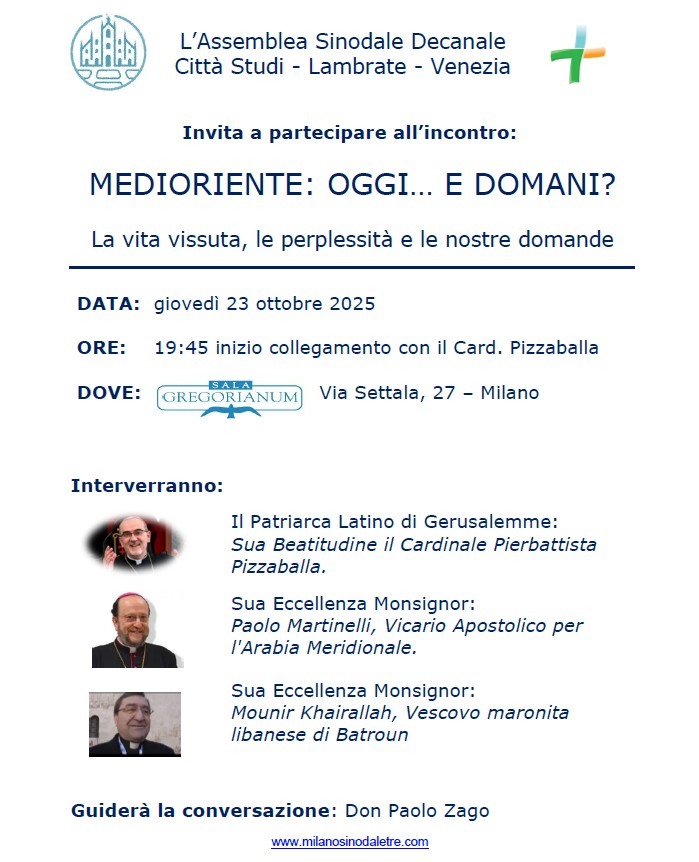Interverranno: Card. Pizzaballa, Mons. Martinelli e Mons. Khairallah